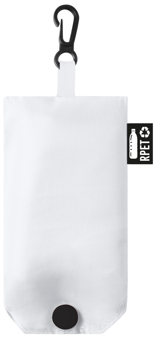 Skládací nákupní taška z RPET polyesteru, s etiketou s označením RPET.