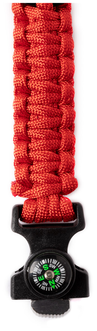 Multifunkční náramek na přežití z padákového nylonu s kompasem, píšťalkou a křesacím kamínkem na zapálení ohně.