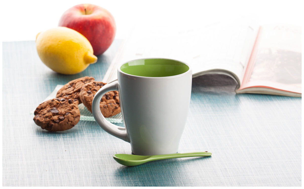 Hrnek se lžičkou - 300 ml Spoon, zelená, bílá