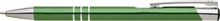 TRIALI hliníková reklamní tužka. Lesklé zelené tělo se třemi stříbrnými proužky a chromovými doplňky.
