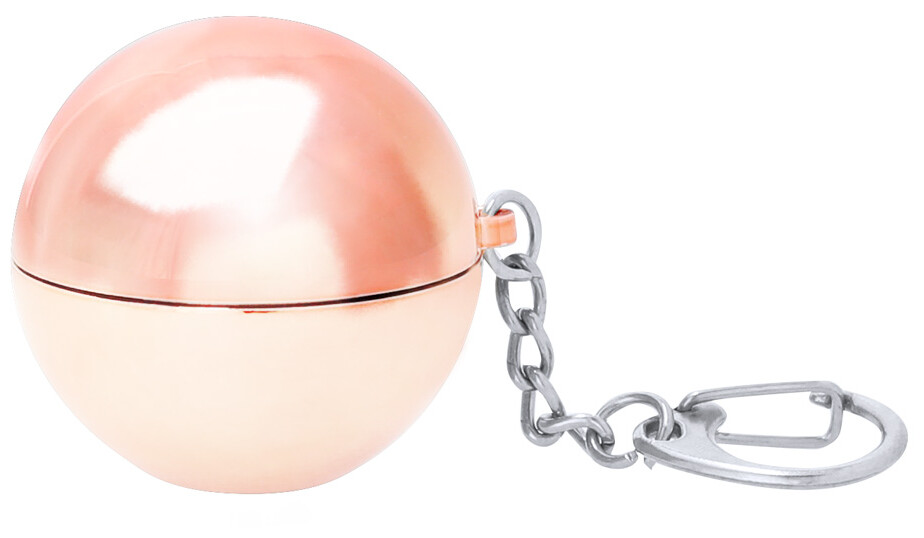 Kulatý vanilkový balzám na rty v kovovém držáku s kovovým kroužkem na klíče. S ochranou SPF15.