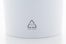 Dvoustěnný vakuově izolovaný termo hrnek z recyklované nerezové oceli s plastovým víčkem na pití z PS. 600 ml.