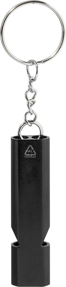 Píšťalka z recyklovaného hliníku s kovovým kroužkem na klíče.
