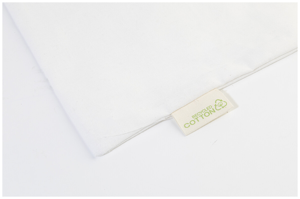 Nákupní taška s dlouhými uchy ze 70 % recyklované bavlny a 30 % RPET polyesteru, 140 g/m2. S výraznou etiketou o recyklované bavlně.