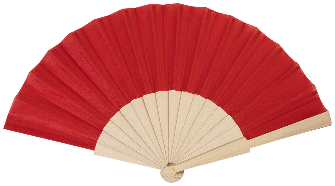 Vějíř z RPET polyesteru s dřevěnými žebry.
