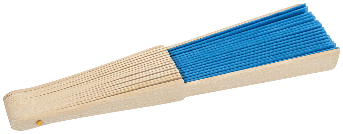 Vějíř z RPET polyesteru s dřevěnými žebry.
