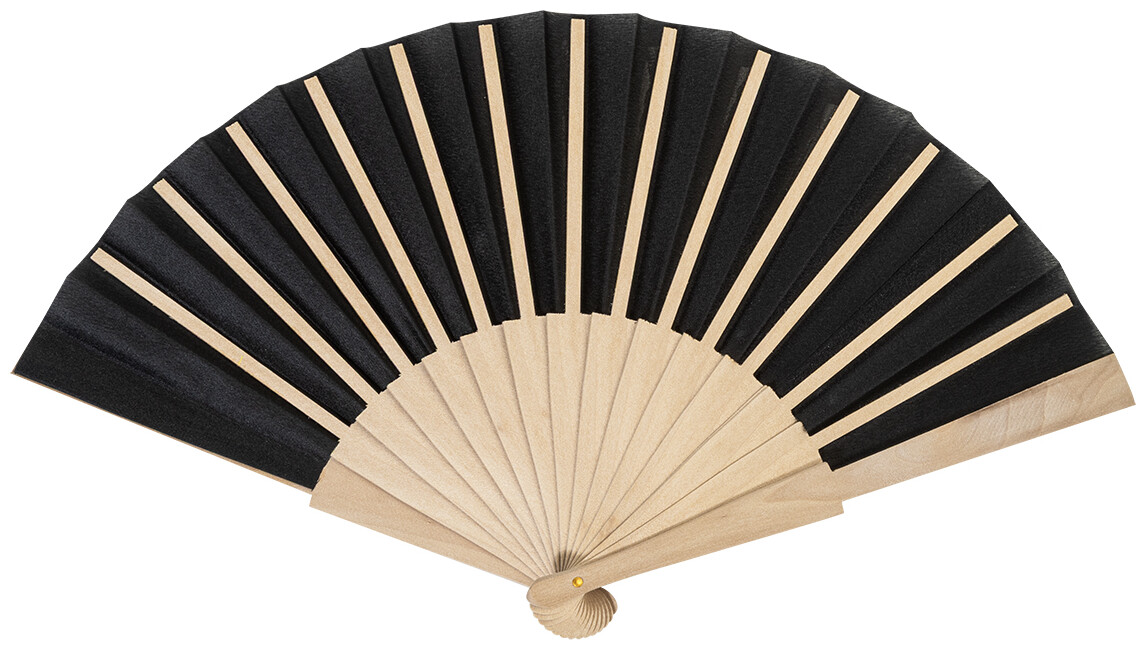 Vějíř z RPET polyesteru s dřevěnými žebry.