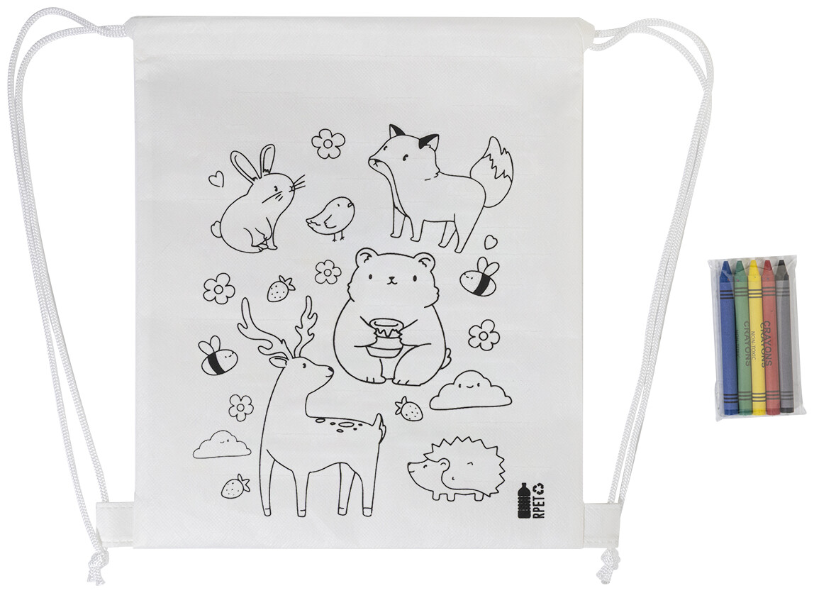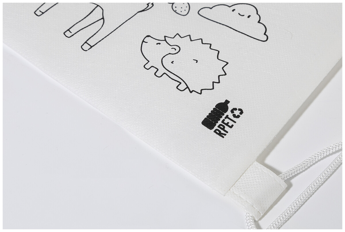 Sáček na šňůrky RPET na vybarvování, zvířata Zocolo, bílá