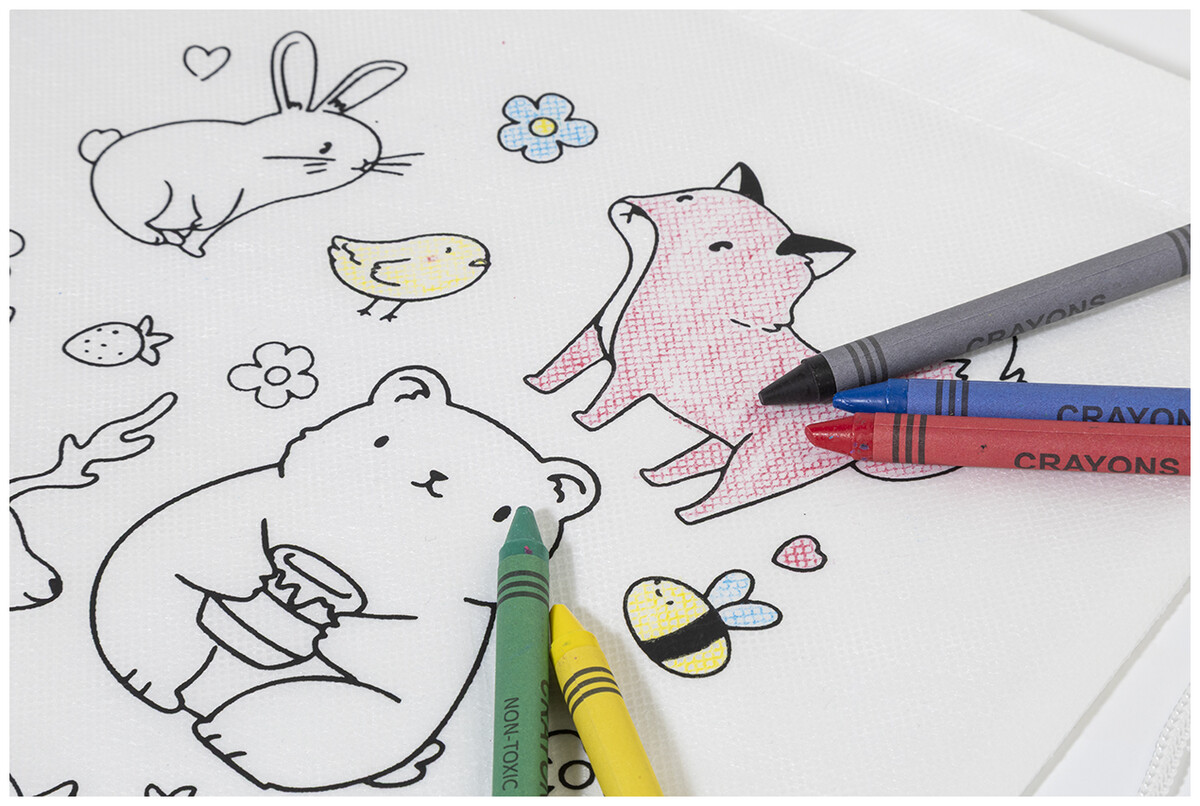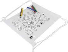 Vak se stahovací šňůrkou pro děti z netkané RPET tkaniny s 5 voskovkami na vybarvení.