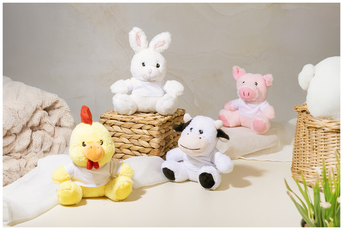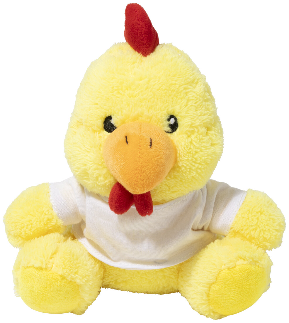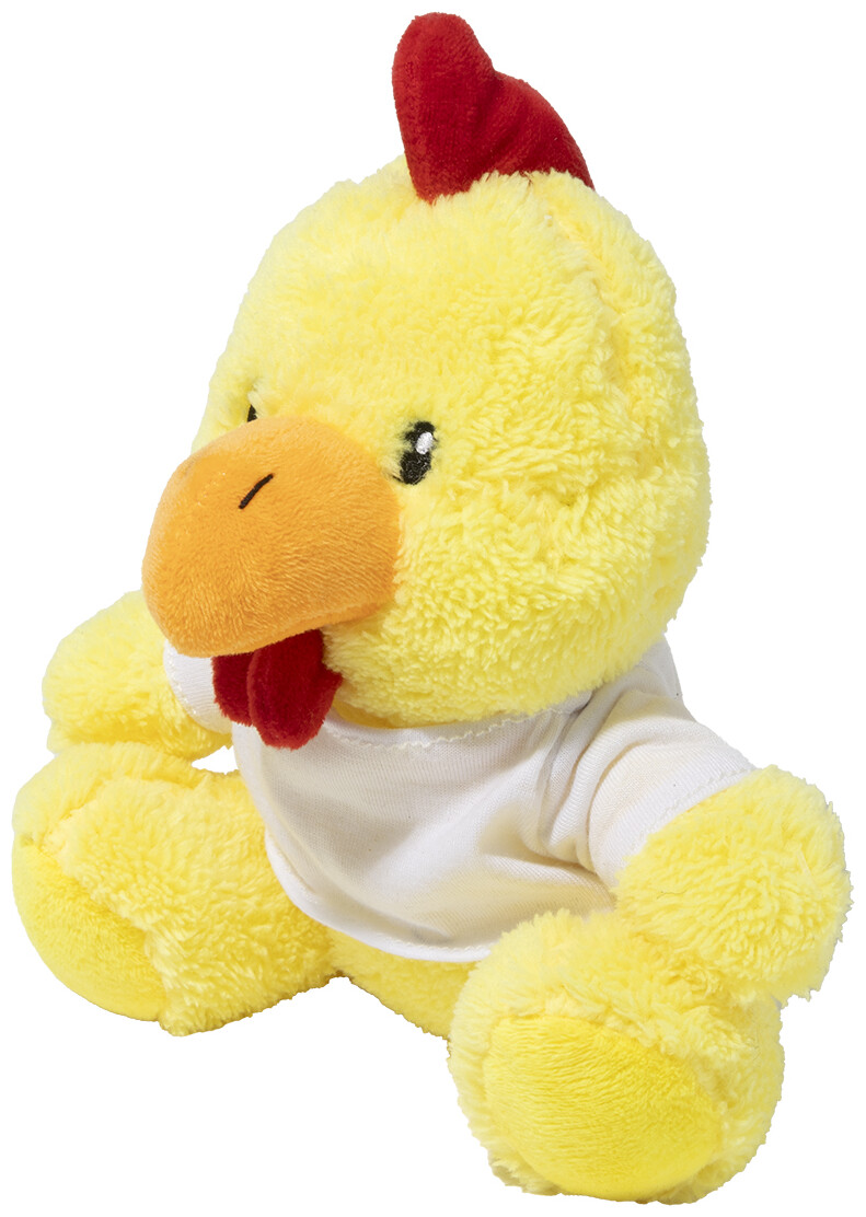 Plyšový kohout z RPET polyesteru s tričkem na potisk.