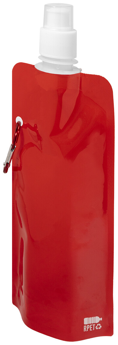 Skládací sportovní láhev z RPET s víčkem na pití a hliníkovou karabinou, 500 ml. Bez BPA. Nevhodná pro sycené nápoje.