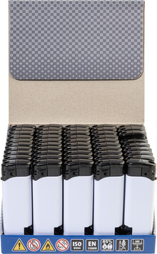 Plnitelný plastový piezoelektrický zapalovač s otvírákem. Dětská pojistka. Dodává se s přibližně 80% hladinou plynu. K dispozici pouze v plném exportním kartonovém množství (násobky 500 kusů)!
