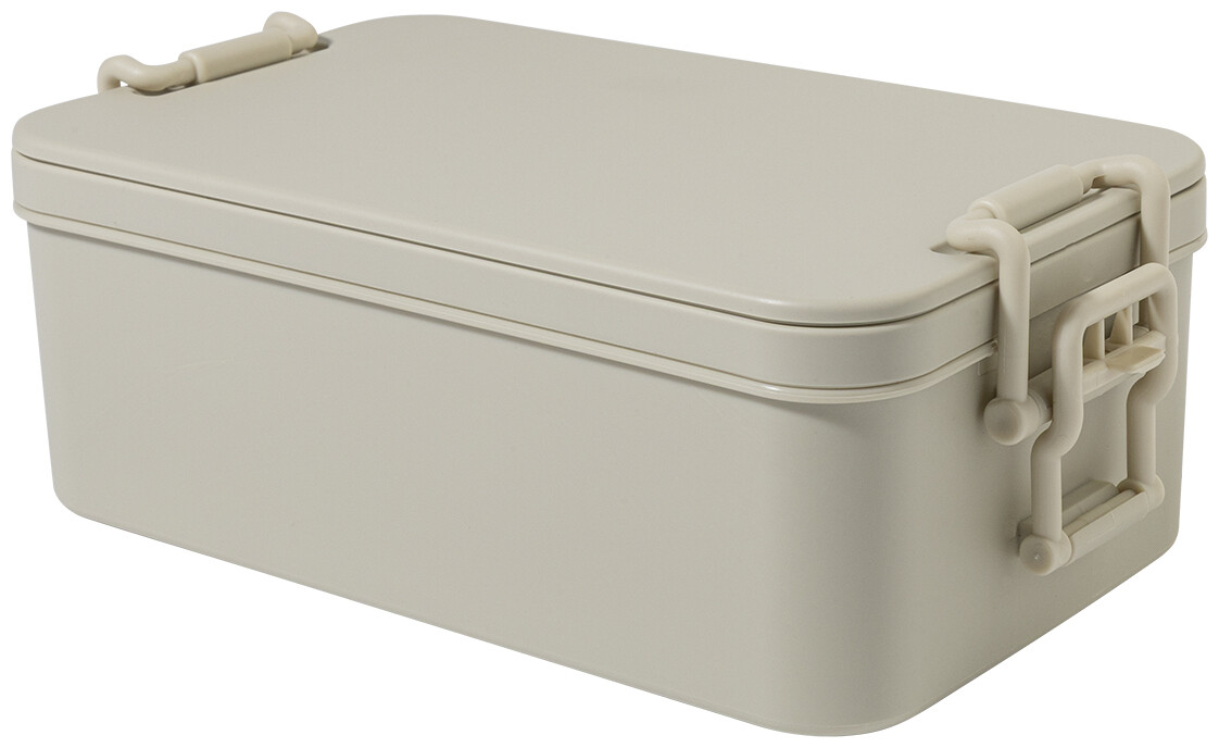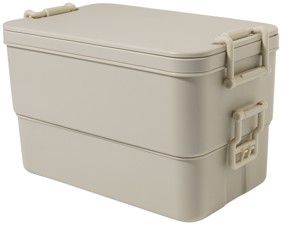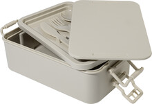 Box na jídlo z PP plastu se sadou příborů (vidlička, lžíce a nůž), zapínáním na přezku a 2 přihrádkami (1000 ml a 800 ml). Stohovatelný design pro kompaktní skladování.