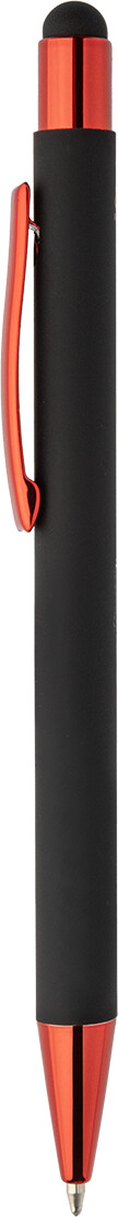 Kuličkové pero z recyklovaného hliníku na dotykovou obrazovku, s černým pogumovaným tělem a barevnými lesklými kovovými částmi. Se speciálním povrchem pro zrcadlové gravírování, které ladí s kovovými částmi. S modrou náplní.
