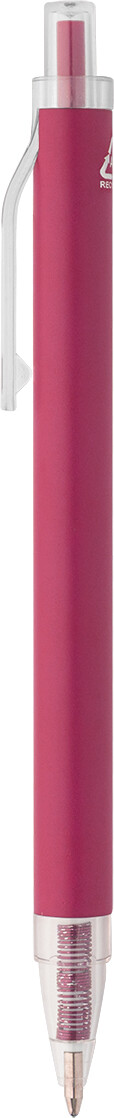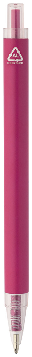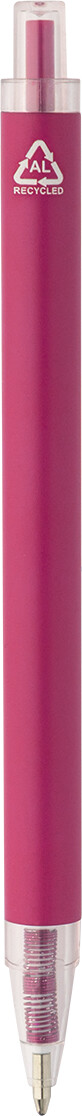 Kuličkové pero z recyklovaného hliníku s matným tělem a průhlednými RPET částmi. S modrou náplní.