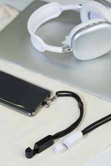 Náramek z RPET s držákem na mobil CuffStand, černá