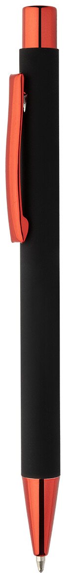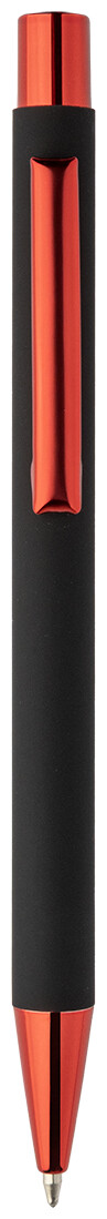 Kuličkové pero z recyklovaného hliníku s černým pogumovaným tělem a barevnými lesklými kovovými částmi. Se speciálním povrchem pro zrcadlové gravírování, které ladí s kovovými částmi. S modrou náplní.
