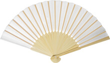 Vějíř z RPET polyesteru s bambusovými žebry.
