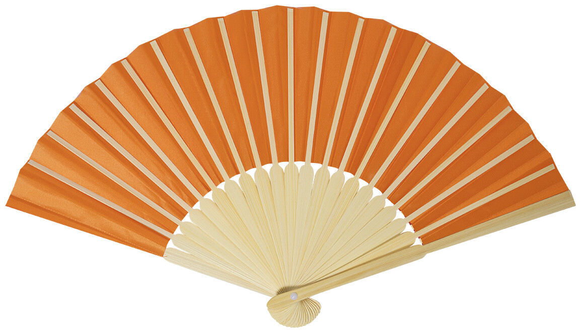 Vějíř z RPET polyesteru s bambusovými žebry.
