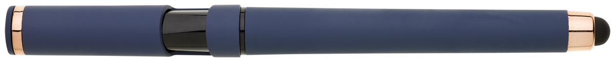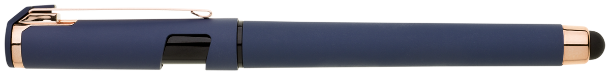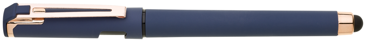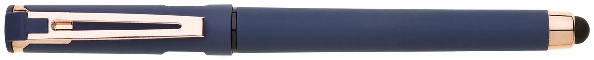 Elegantní gelové pero ROSEO SOFT GEL se soft povrchem, touch koncovkou a doplňky v růžovo-zlaté barvě. Pero má gelovou velkoobsahovou náplň, která píše modře.