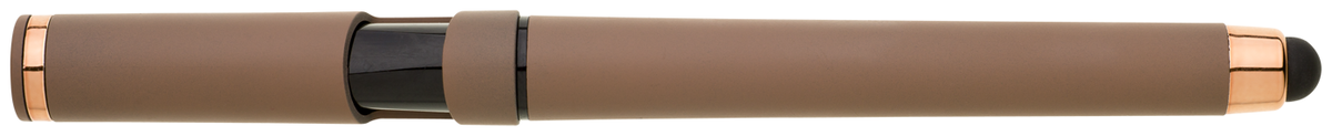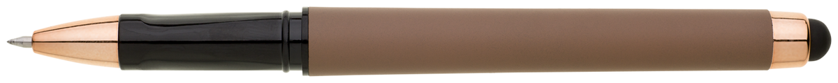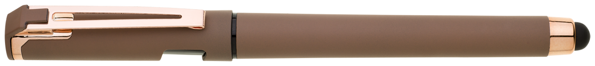 Elegantní gelové pero ROSEO SOFT GEL se soft povrchem, touch koncovkou a doplňky v růžovo-zlaté barvě. Pero má gelovou velkoobsahovou náplň, která píše modře.