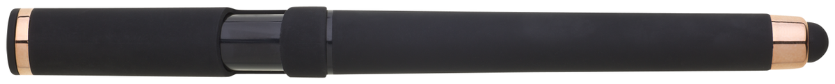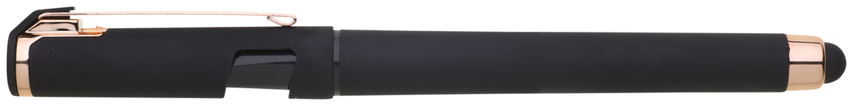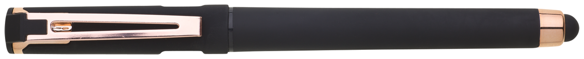 Elegantní gelové pero ROSEO SOFT GEL se soft povrchem, touch koncovkou a doplňky v růžovo-zlaté barvě. Pero má gelovou velkoobsahovou náplň, která píše modře.