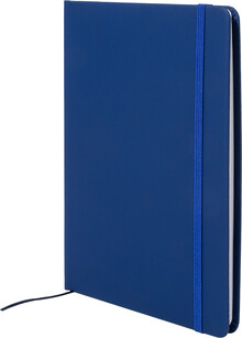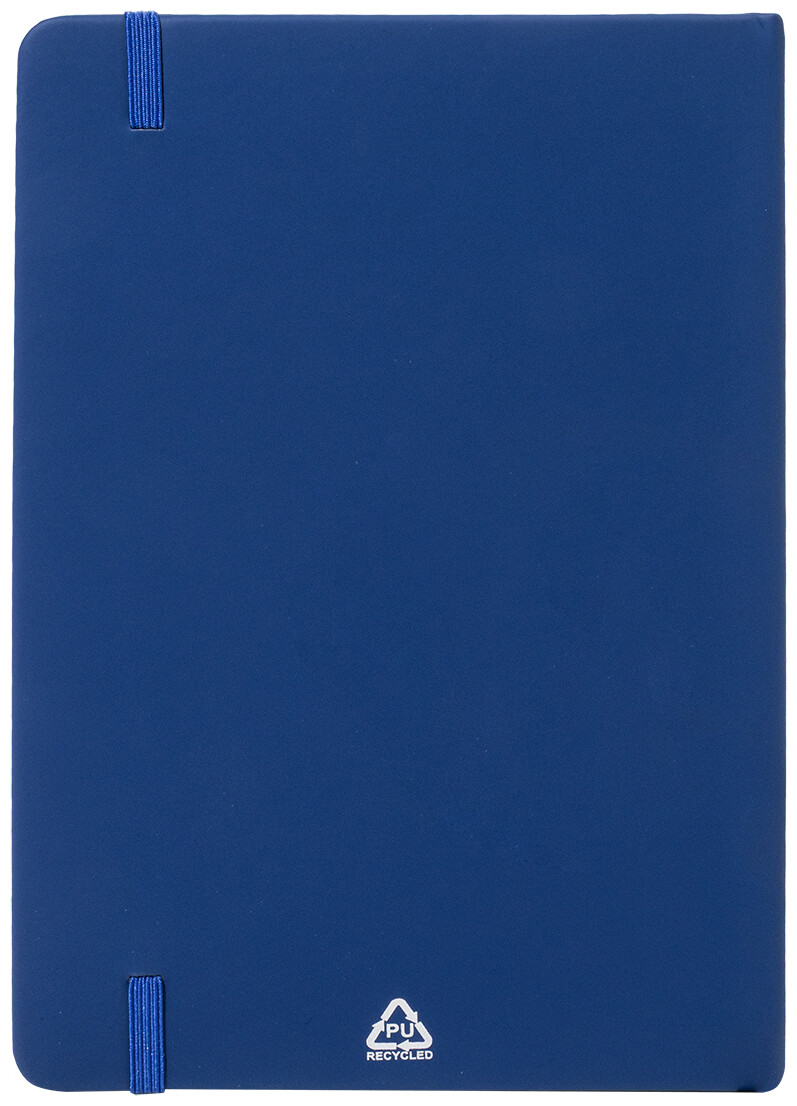 Blok A5 z recyklované PU kůže se 100 čistými listy z recyklovaného papíru. Se záložkou v odpovídající barvě a gumičkou.