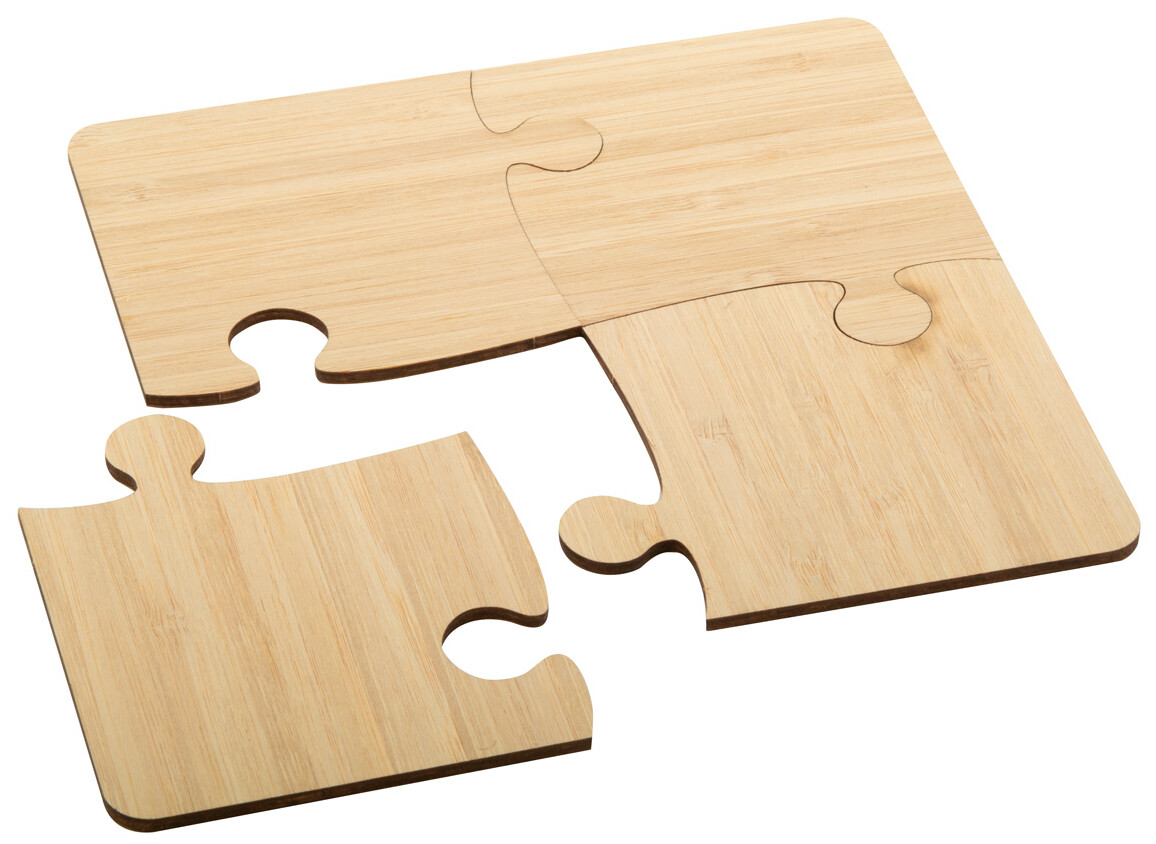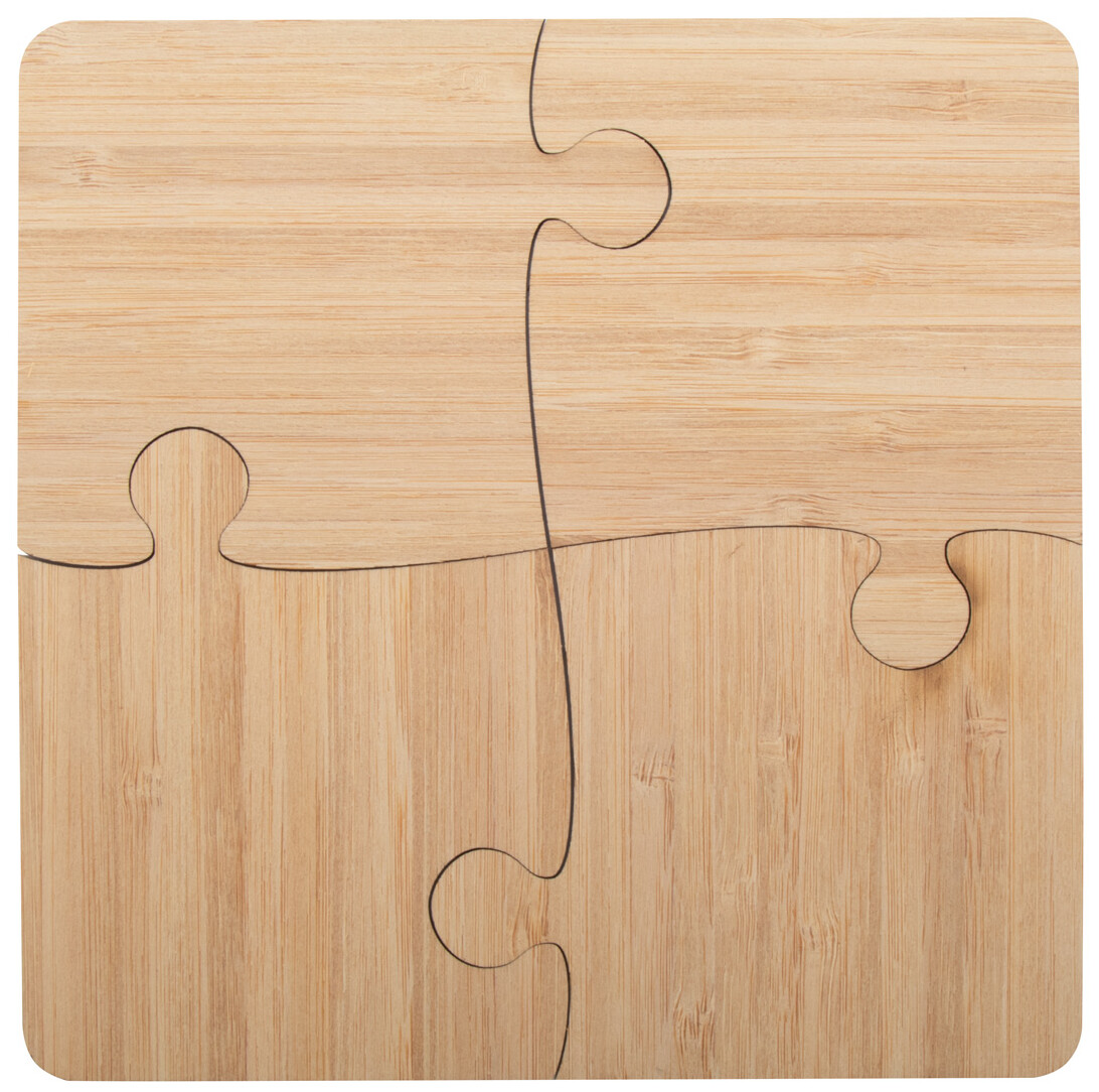 4dílná sada bambusových tácků ve tvaru puzzle.