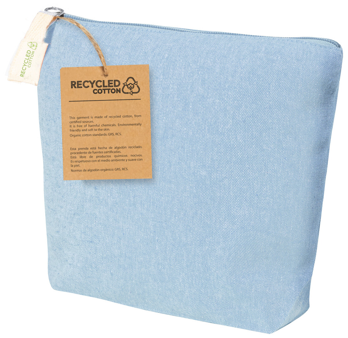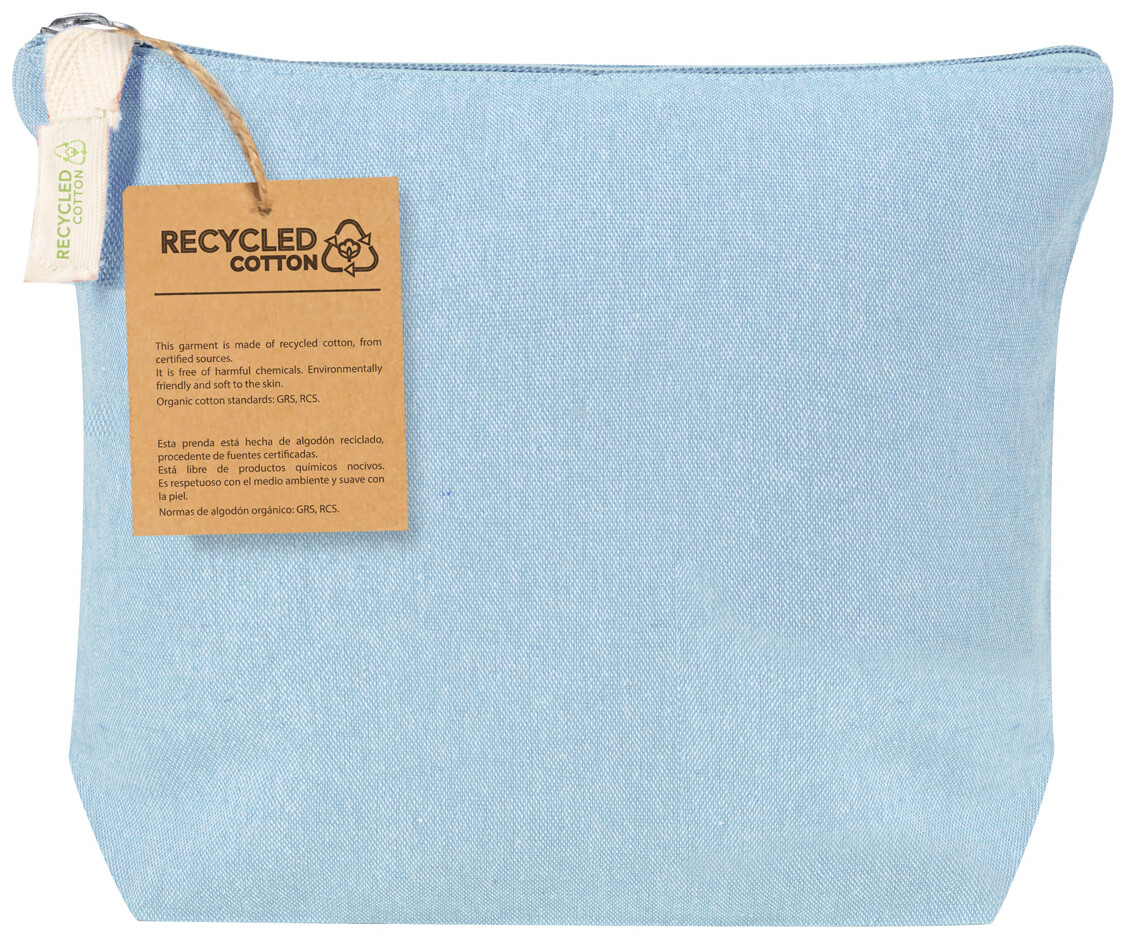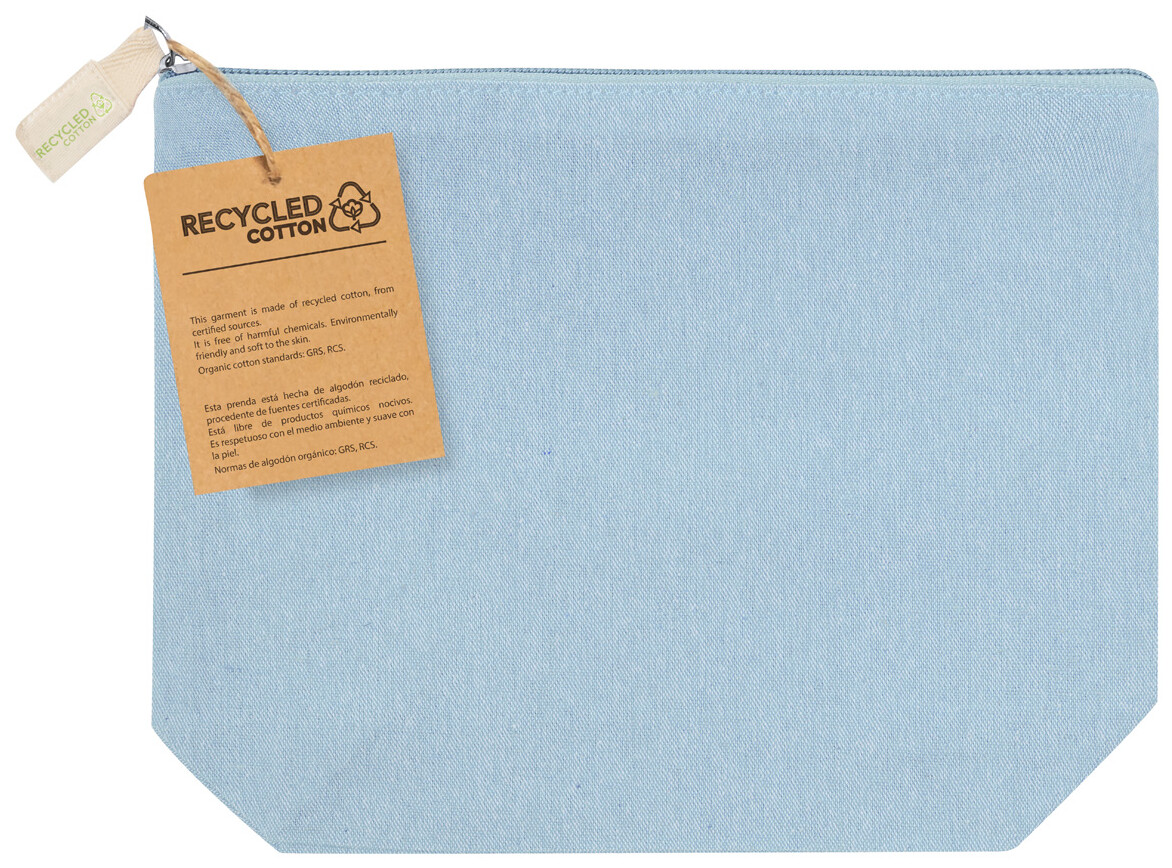 Kosmetická taštička na zip z recyklované bavlny. S výrazným štítkem z recyklované bavlny.