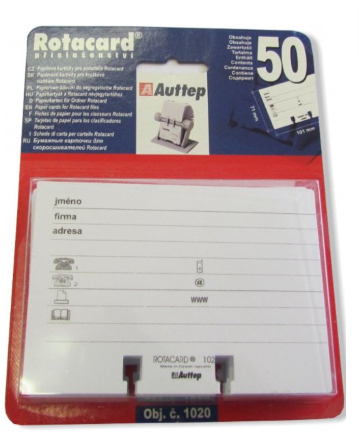 Náhradní papírová náplň pro Rotacard je určena pro doplnění rotačních a lineárních vizitkářů a kartoték Rotacard®. Umožňuje přehledné vedení kontaktů.