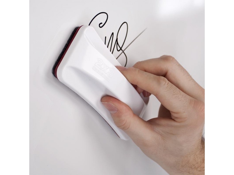 Magnetická stěrka s ergonomickým uchycením, výměnnými filcy a rozšířenou stírací plochou 62 x 150 mm.