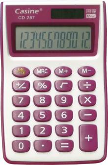 Stolní kalkulátor Casine CD-287, oceníte jak v kanceláři tak i ve škole. Disponuje velkým 12-místným displejem, solárním dobíjením a klávesnicí s velkými tlačítky v barevném kontrastním provedení pro pohodlné zadávání. Nechybí ani funkce jako automatické vypnutí, výpočet %, odmocniny, +/-, paměť.