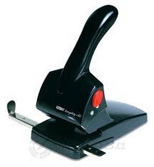 Výkonný děrovač s ergonomicky tvarovaným ramenem z litého kovu. Vhodný do kanceláře. Kapacita: 65 listů. Rozteč otvorů: 7,5 cm. Průměr otvorů: 0,55 cm. Barevné provedení: černé.