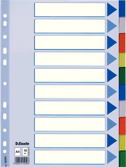 | 1726432 | Rozřaďovač Esselte A4, mix barev, 10 listů | 75,52 Kč | 91,38 Kč | 1 bal | |||