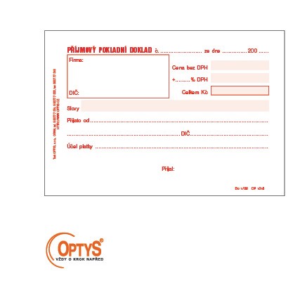 | 1709214 | PŘÍJMOVÝ POKLADNÍ DOKLAD OPTYS samopropisovací jednoduchý | 34,03 Kč | 41,18 Kč | 1 ks | |||