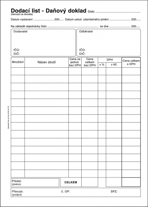 | 1408608 | Dodací list A5/50l, samopropisovací | 47,60 Kč | 57,60 Kč | 1 ks | |||