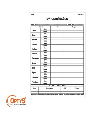 | 1709408 | VÝPLATNÍ SÁČEK OPTYS A5 | 5,87 Kč | 7,10 Kč | 1 ks | |||