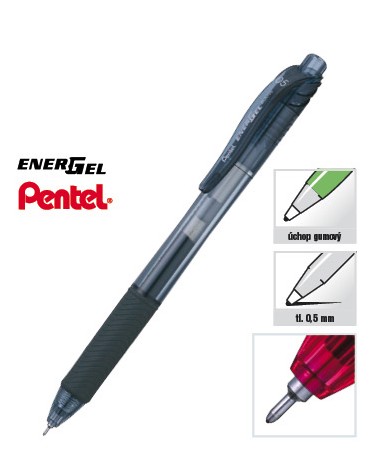 EnerGel nová generace s rychleschnoucí gelovou náplní. Elegantní moderní design. Plastový klip, mačkací mechanika. Pogumovaný grip pro pohodlné psaní. Stopa: 0,5 mm. Náplň: LRN5.