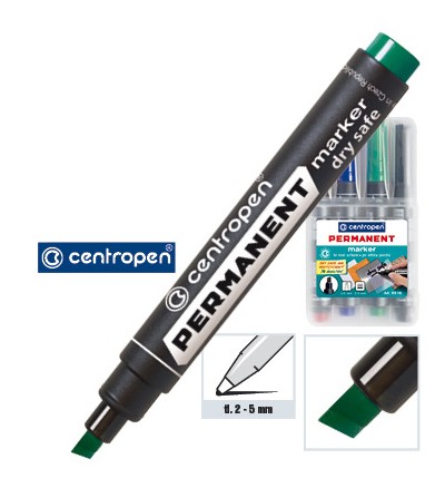 Permanentní značkovač, který díky své speciální inkoustové náplni vydrží i 14 dní otevřený a nevyschne. Píše na papír, kartón, dřevo, kov, umělou hmotu, sklo, porcelán i kámen. Permanentní inkoust na alkoholové bázi. Stopa písma odolná vodě, teplotě do 100°C, otěru a povětrnostním vlivům. Klínový hrot, šíře stopy 2 - 5 mm.
