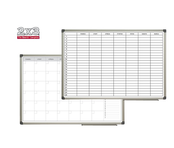 Plánovací tabule magnetická, popisovatelná za sucha stíratelnými popisovači, s hliníkovým rámem, odkládací lištou a sadou pro připevnění. Rozměr tabule 60 x 90 cm, plánovací rastr v českém jazyce.