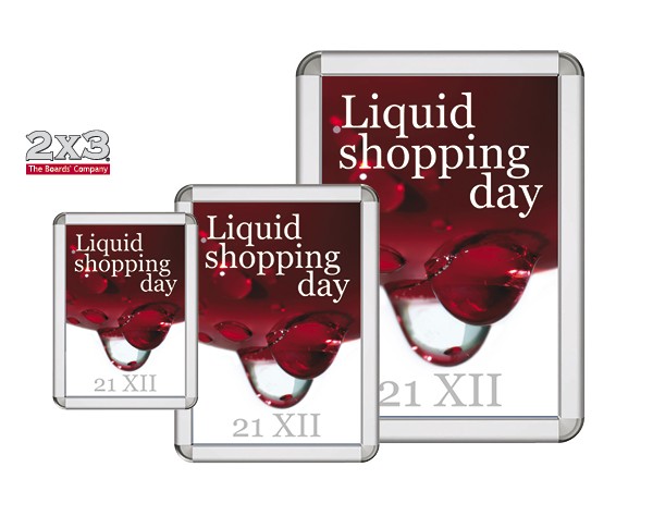 Clip rám s kulatými rohy 32 mm. Hliníkový profil. Antireflexní krycí fólie.