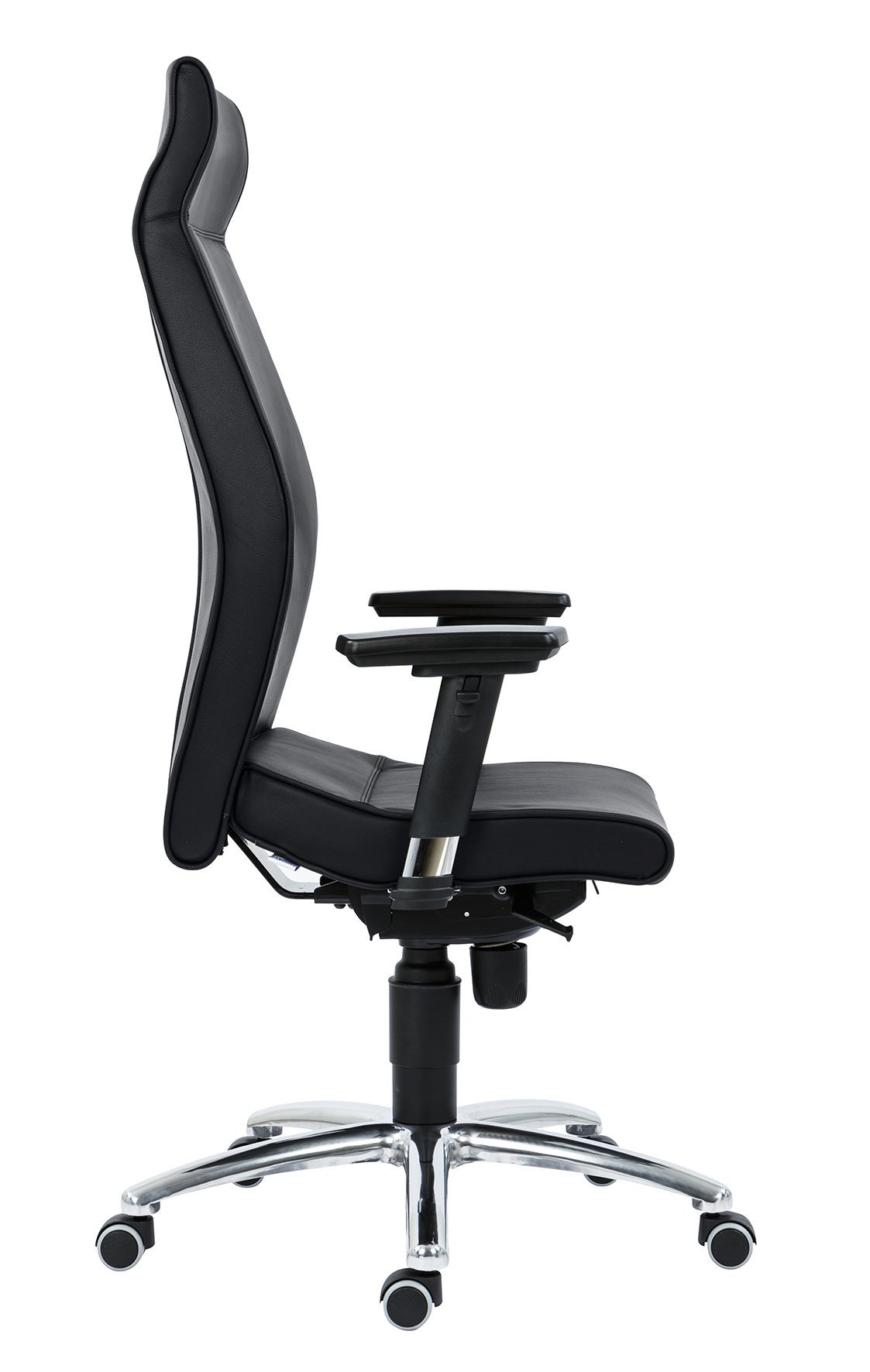 extra vysoký opěrák, ergonomické tvarování sedáku a opěráku, čalounění ze studené pěny, vyráběné vstřikováním do formy zaručující vysokou životnost a tvarovou stálost, synchronní mechanismus s nastavením síly protiváhy, ALU leštěná báze, kolečka s gumovou obručí pr. 50 mm pro všechny typy podlah, výškově nastavitelné područky se třemi funkčními nastaveními (AR08 C), nosnost 160 kg, český výrobek, záruka 60 měsíců