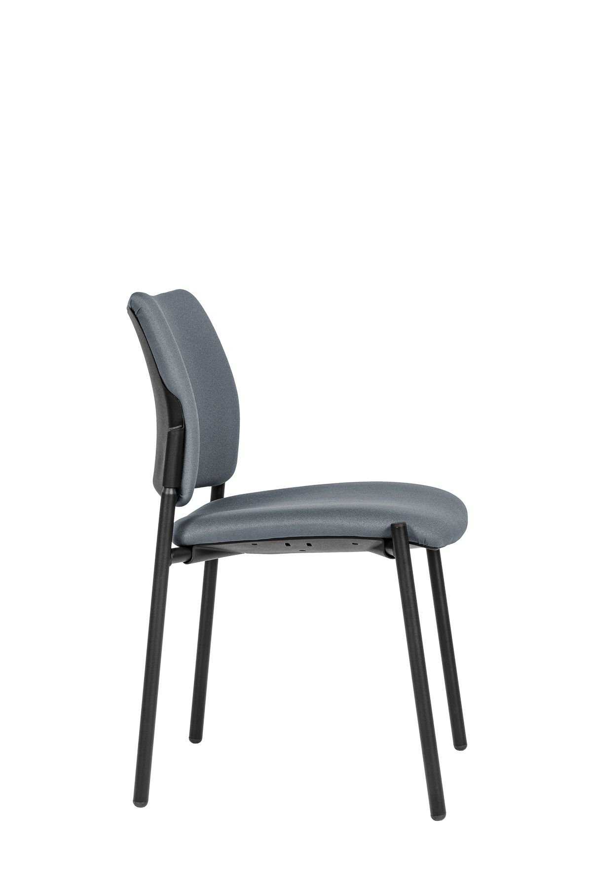 moderní jednací židle bez područek, čalouněný sedák a opěrák, ocelový rám lakovaný černě, stohovatelnost 5 kusů, nosnost 120 kg, záruka 36 měsíců, český výrobek