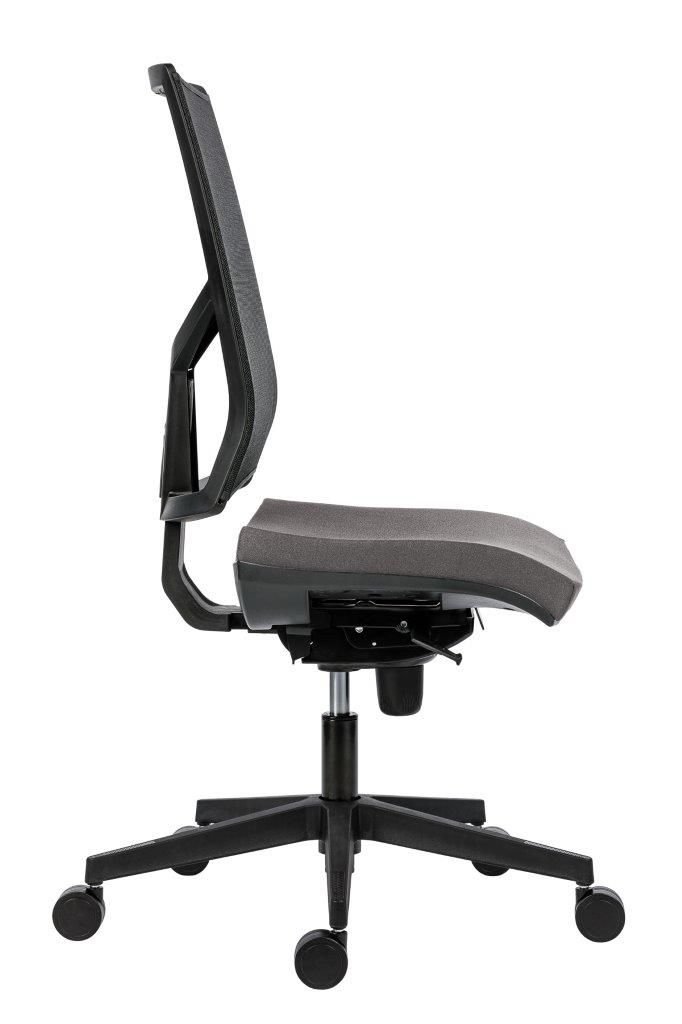 židle s vysokým síťovaným opěrákem a výškově nastavitelnou bederní výztuhou, volitelný podhlavník se sítí nebo čalounem výškově a uhlově nastavitelný, možnost doplnění ramínka na oděv, nastavení výšky opěráku s uzamykáním, čalounění ze studené pěny, nový design sedáku s výrazným zaoblením přední hrany a robustní výškou pro maximální pohodlí synchronní mechanismus s čtyřnásobnou aretací, automatickým nastavením síly protiváhy a nastavením hloubky sedáku, plastová báze, kolečka pr. 60 mm pro měkké podlahy, volitelné područky, nosnost 150 kg, český výrobek, záruka 60 měsíců