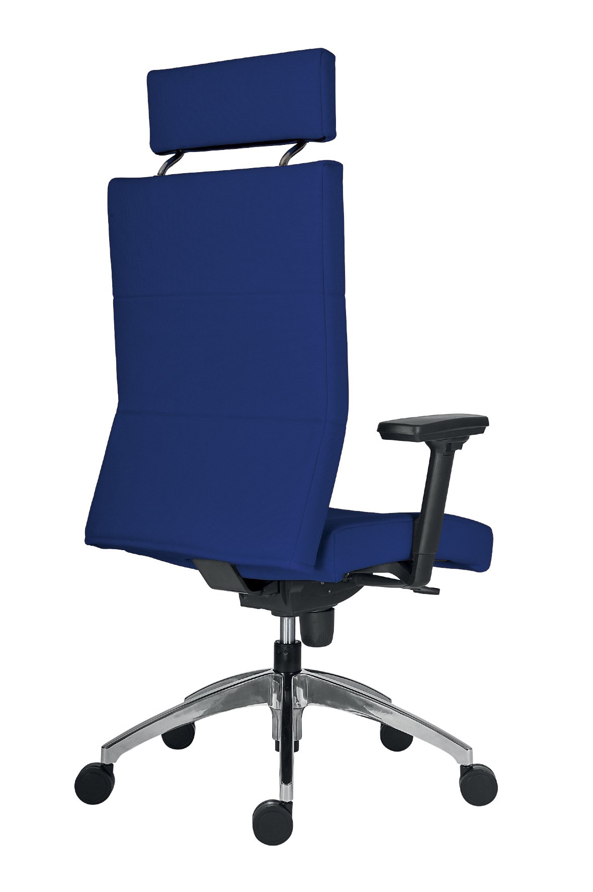 křeslo se středně vysokým opěrákem a podhlavníkem, synchronní mechanismus s čtyřnásobnou aretací, automatickým nastavením síly protiváhy a nastavením hloubky sedáku, moderní kvadratický tvar čalounění respektující současně ergonomická zakřivení, výškově nastavitelné područky se čtyřmi funkčními nastaveními (AR12), kolečka pr. 60 mm pro měkké podlahy, ALU leštěná báze, prošívané čalounění, nosnost 160 kg, český výrobek, záruka 60 měsíců