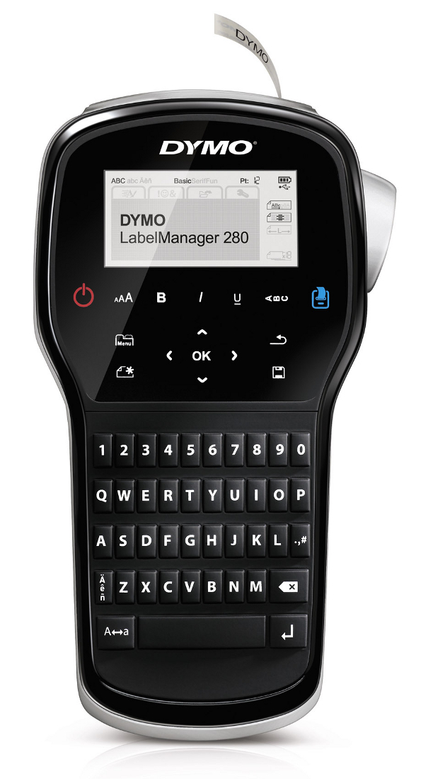 Přenosný dobíjecí štítkovač DYMO® LabelManagerTM™ 280 vám umožní snadno si uspořádat vše kolem vás. Připojíte-li jej k počítači PC nebo Mac®*, budete moci upravit štítky pomocí různých písem a grafiky z počítače. Klávesnice počítačového typu s rozvržením specifickým pro danou zemi umožňuje rychlé, snadné a pohodlné zadávání textu. Text pak lze snadno upravit pomocí tlačítek pro rychlé formátování jedním dotykem. Nyní můžete štítkovat bez nákladů a nevýhod spojených s jednorázovými bateriemi. Díky dobíjecí bateriové sadě můžete jednoduše dobít, zadat text a vytisknout. Štítkovač LabelManagerTM™ 280 tiskne o 50 % rychleji než ostatní modely DYMO. K tisku lze použít štítky DYMO D1 o šířce 6, 9, 12 mm a v několika barvách, které jsou ideální pro označení pořadačů, regálů, vybavení atd.