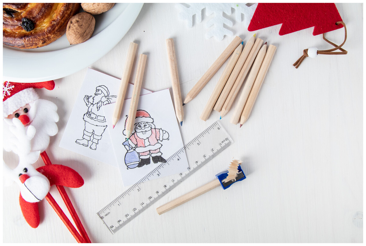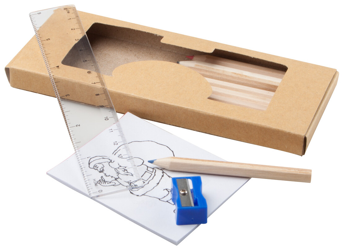 Sada na kreslení s 10ti barevnými pastelkami, 1 ořezávátkem, 1 pravítkem a omalovánkami.