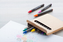 Voskovky obalené černým papírem v papírové krabičce.