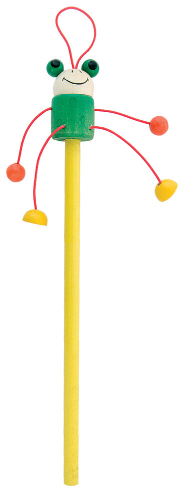 Dřevěná tužka s barevnou figurkou, neořezaná.