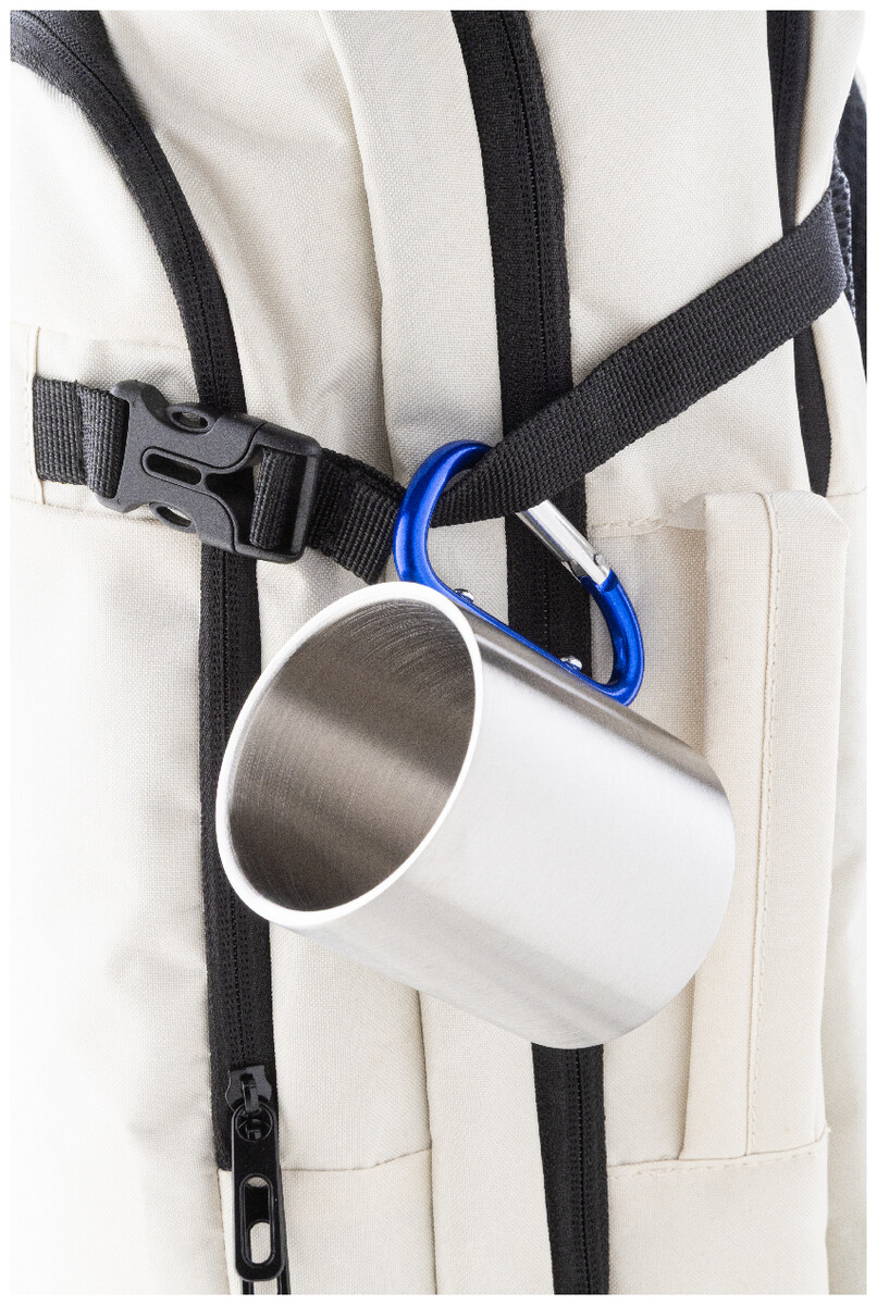 Nerezový hrnek s barevným karabinkovým uchem, 200 ml.